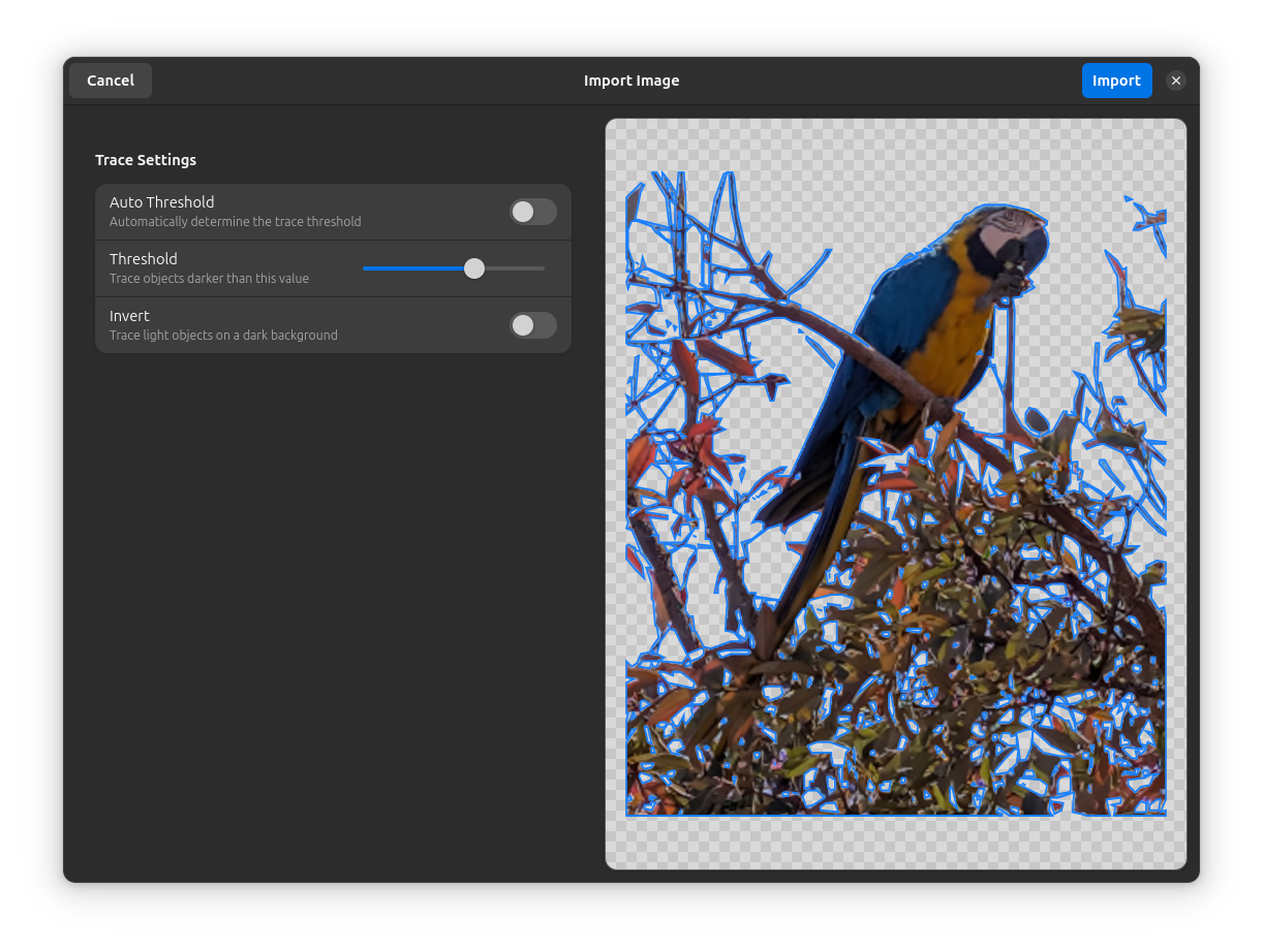 All raster images are traced to create vector paths that can be used for laser operations. The quality depends on the tracing configuration.
